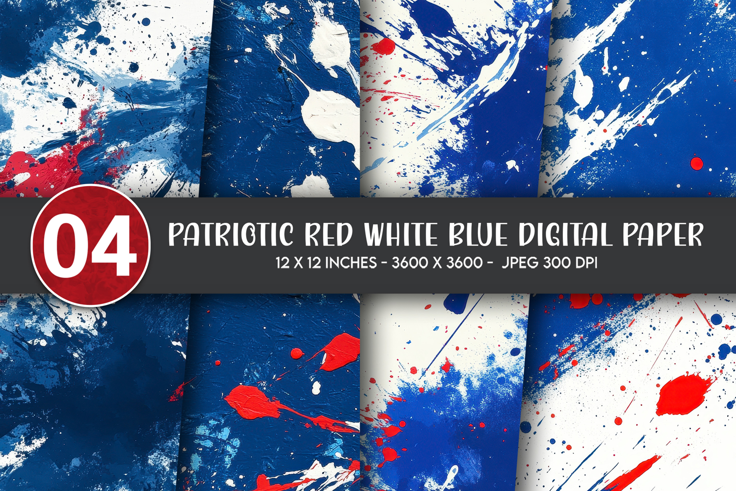 Watercolor Digital Paper Abstract Background Red White Blue Artistic Background Paint Splatter Texture Ink Splash Pattern Messy Paint Pattern Patriotic Color Theme Bright Paint Texture Blue White Design