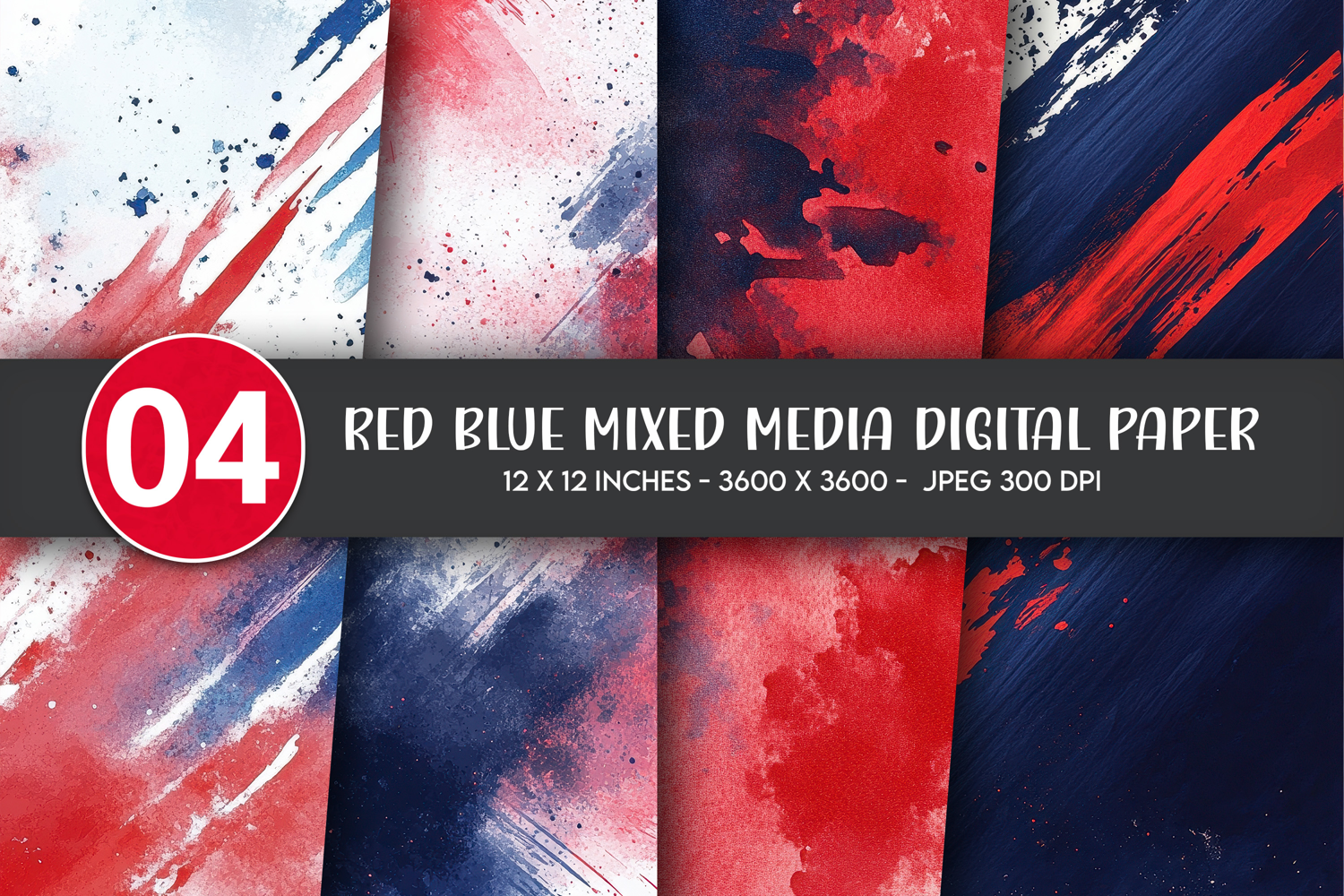 Red Blue Mixed Media Digital Paper