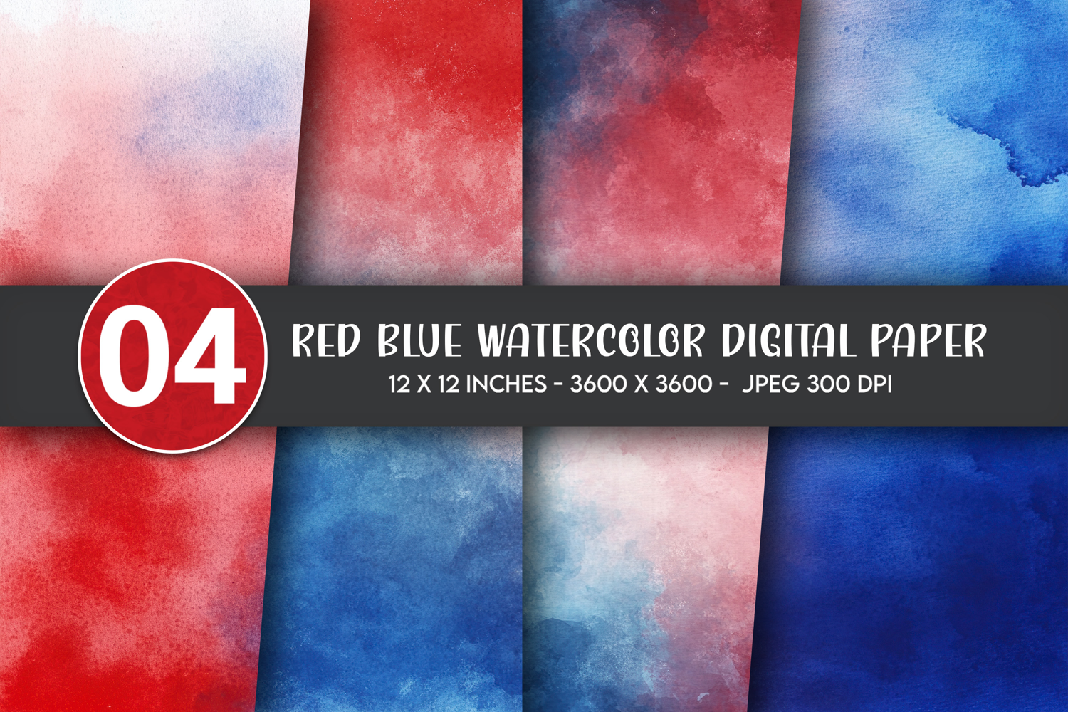 Similar Design Products to Red Blue Watercolor Digital Paper