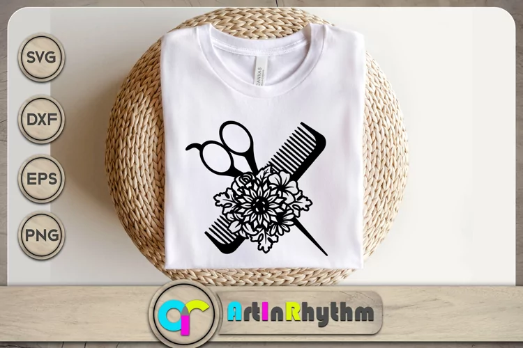 Floral Hairstylist SVG, Floral Hairdresser SVG, Comb scissor