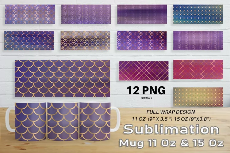 Mug Wrap Sublimation Design for sublimation of 11 oz mugs and 15 oz mugs .12 mug designs with a variety of colors , Mug wrap can also be used as a sublimation background and the desired text can be added. Use these files to make beautiful Mug and have fun creating