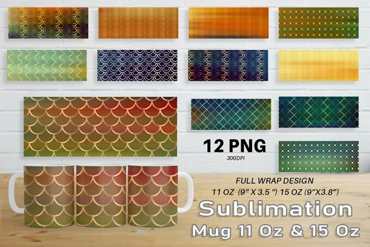 Mug Wrap Sublimation Design for sublimation of 11 oz mugs and 15 oz mugs .12 mug designs with a variety of colors , Mug wrap can also be used as a sublimation background and the desired text can be added. Use these files to make beautiful Mug and have fun creating