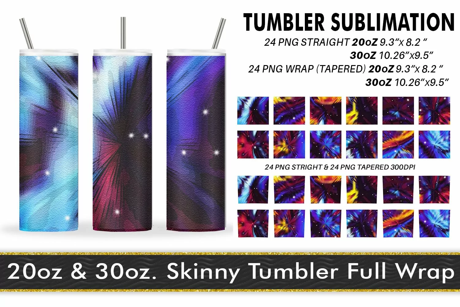 12 Variations Sublimation Tumbler pop art glitter dark blue