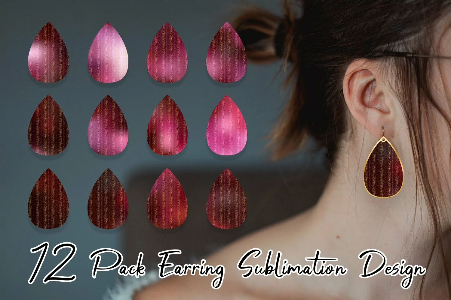 Earrings Earrings Bundle Earrings Template Teardrop Earring Sublimation Earrings Teardrop Earrings Bundle Earring Sublimation Designs Teardrop Earring Sublimation Designs Art Deco Pattern Gradient Dark Pink
