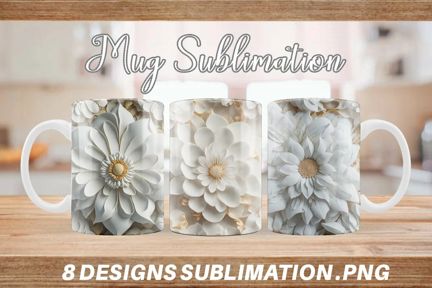 Similar Design Products to 3D White Flowers Mug Wrap | Sublimation Coffee Cup