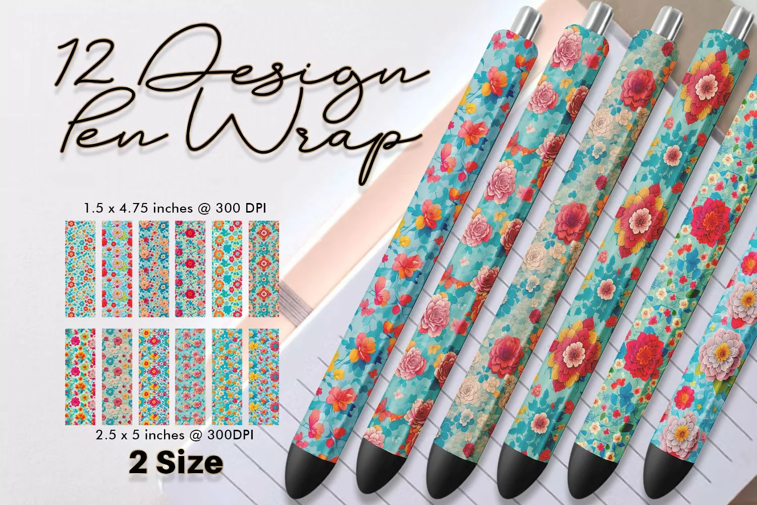 Floral Pattern Pen Wrap | Flower Pen Wrap Sublimation Bundle