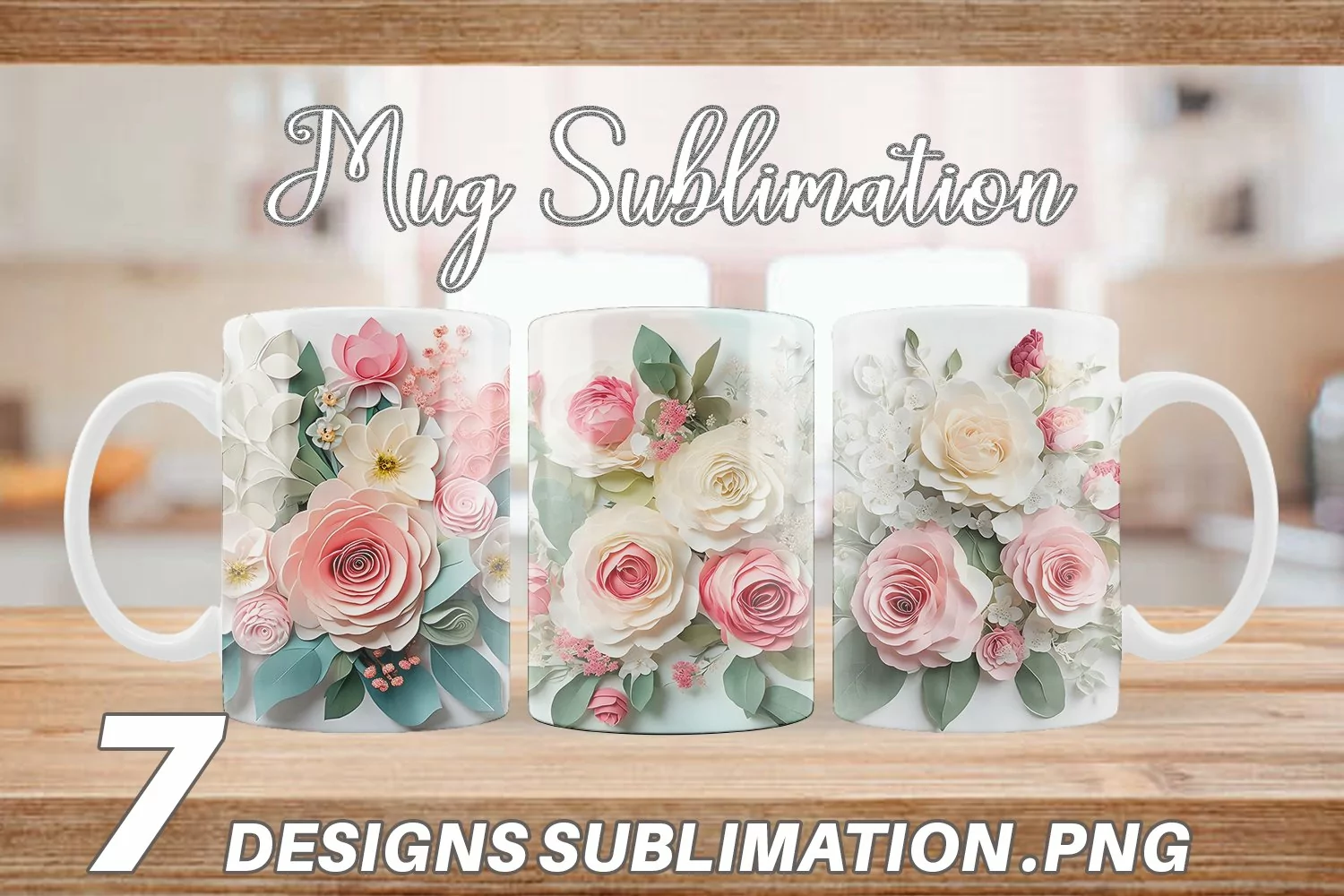 3D Flowers Mug Wrap | Sublimation Coffee Cup example image 1
