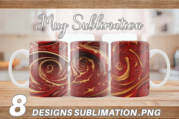 Sublimation Mug Coffee Cup Design Sublimation Designs Mug Sublimation Mug Sublimation Design Coffee Mug Sublimation Mug Wrap Mug Sublimation Bundle 3d Turbulent Waves 3d Turbulent Waves Red And Gold