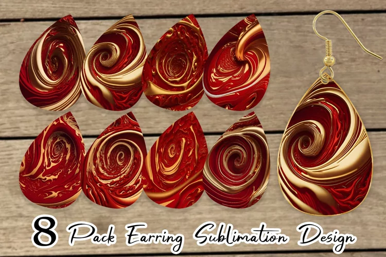 Earrings Earrings Bundle Earrings Template Teardrop Earring Sublimation Earrings Earring Sublimation Designs Teardrop Earring Sublimation Designs Sublimation Teardrop Earrings Earring 3d Wave Liquid Red Gold Illustration 3d Wave Liquid Red Gold