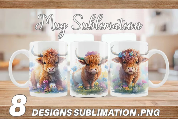Sublimation Mug Coffee Cup Design Sublimation Designs Mug Sublimation Mug Sublimation Design Coffee Mug Sublimation Mug Wrap Mug Sublimation Bundle Illustration Highland Cow Baby Highland Cow Baby Mug Wrap
