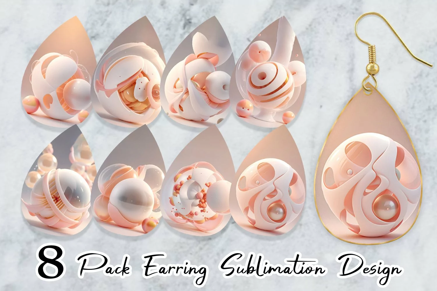 3D Bubble Peach Color Earring teardrop sublimation design example image 1