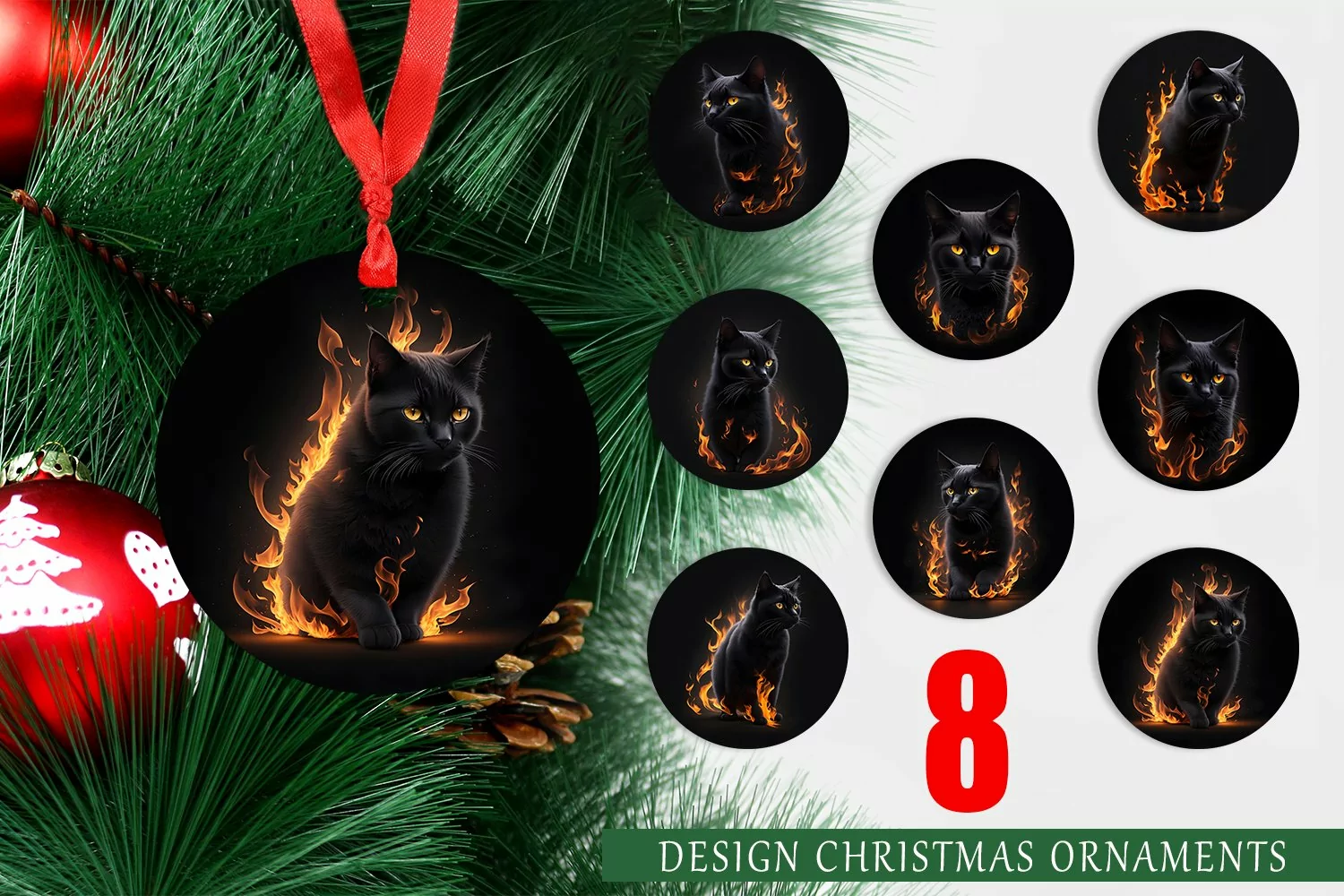 Similar Design Products to Christmas Ornaments 3D Black Cat Burning