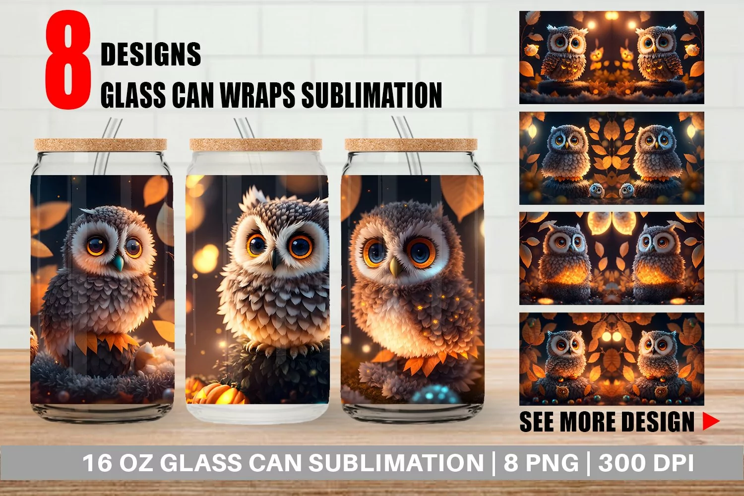 3D Bird Owl Halloween Glass Can Wraps example image 1
