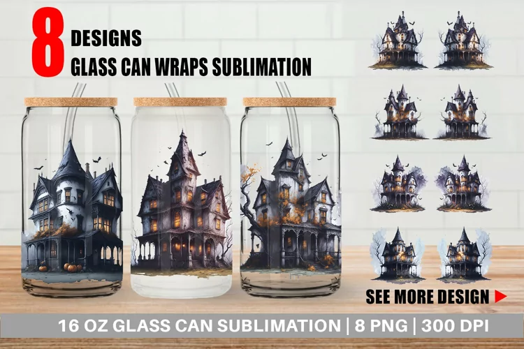 Sublimation Design Glass Can Wrap Libbey Glass Beer Can Glass Glass Can Sublimation 16oz Glass Can Wrap Glass Can Halloween Haunted House Halloween Glass Can Wrap Haunted House Halloween Glass Can Sublimation Haunted House Halloween