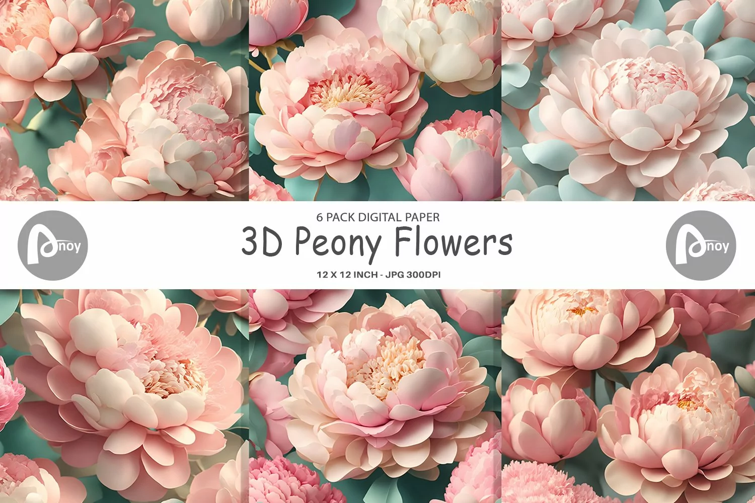 Here is a set 6 Pack "3D Peony Flowers | Digital Paper", an essential addition to enhance your digital or physical projects with ease.
