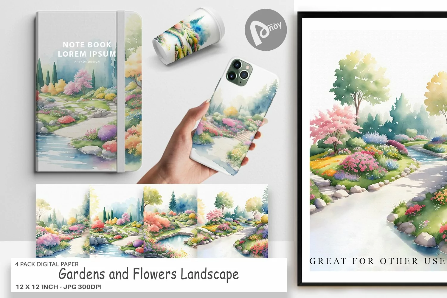 Here is a set 4 Pack "Digital Paper Gardens and Flowers", an essential addition to enhance your digital or physical projects with ease.
