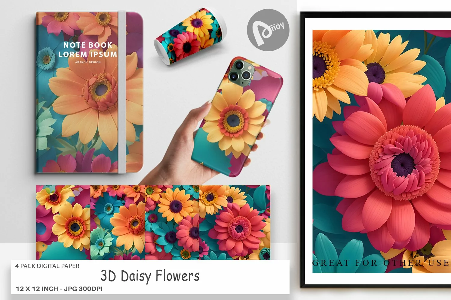 Here is a set 4 Pack "Digital Paper 3D Daisy Flowers", an essential addition to enhance your digital or physical projects with ease.