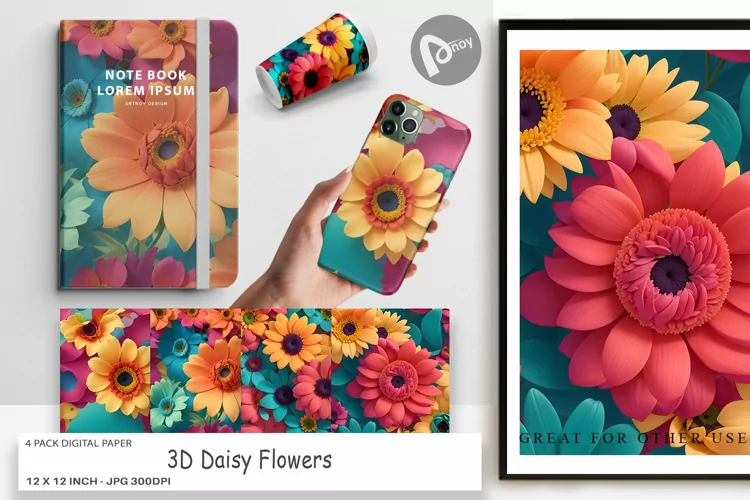 Embark on a journey of artistic excellence with the 4 Pack "Digital Paper 3D Daisy Flowers". Transform your projects into captivating works of art and immerse yourself in a world of endless creativity. Get your hands on this essential collection today and witness the transformative power it holds for your digital and physical creations.