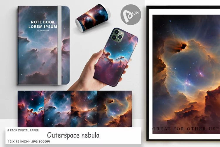 Embark on a journey of artistic excellence with the 4 Pack "Digital Paper Outerspace nebula". Transform your projects into captivating works of art and immerse yourself in a world of endless creativity. Get your hands on this essential collection today and witness the transformative power it holds for your digital and physical creations.