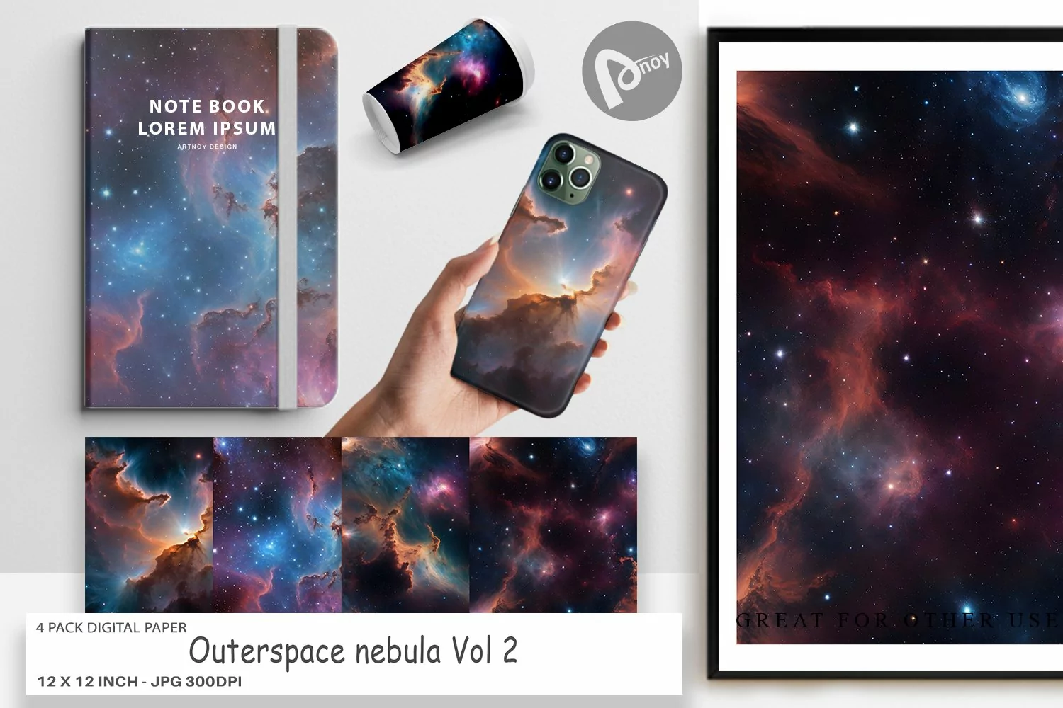 Embark on a journey of artistic excellence with the 4 Pack "Digital Paper Outerspace nebula". Transform your projects into captivating works of art and immerse yourself in a world of endless creativity. Get your hands on this essential collection today and witness the transformative power it holds for your digital and physical creations.