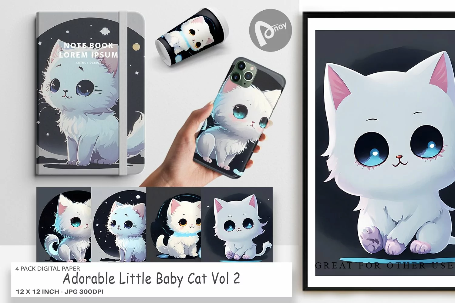 Embark on a journey of artistic excellence with the 4 Pack "Digital Paper Adorable Little Baby Cat". Transform your projects into captivating works of art and immerse yourself in a world of endless creativity. Get your hands on this essential collection today and witness the transformative power it holds for your digital and physical creations.