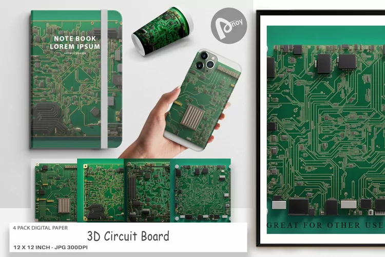 Embark on a journey of artistic excellence with the 4 Pack "Digital Paper 3D Circuit Board". Transform your projects into captivating works of art and immerse yourself in a world of endless creativity. Get your hands on this essential collection today and witness the transformative power it holds for your digital and physical creations.