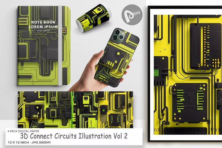 Embark on a journey of artistic excellence with the 4 Pack "Digital Paper 3D Connect Circuits". Transform your projects into captivating works of art and immerse yourself in a world of endless creativity. Get your hands on this essential collection today and witness the transformative power it holds for your digital and physical creations.