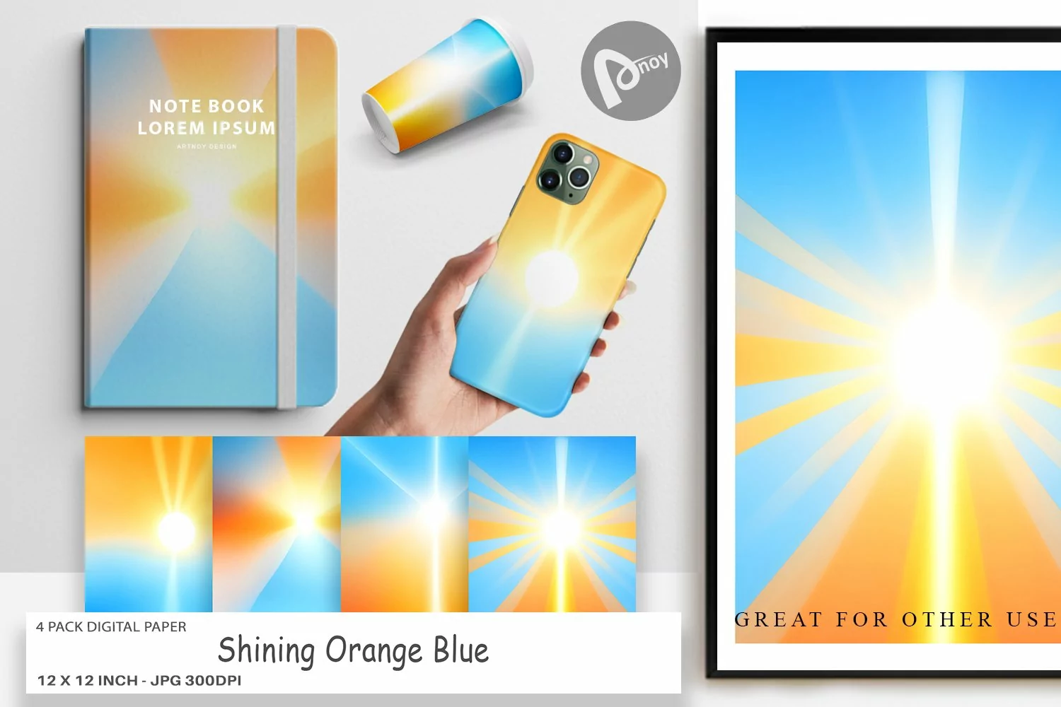 Embark on a journey of artistic excellence with the 4 Pack "Digital Paper Shining Orange Blue". Transform your projects into captivating works of art and immerse yourself in a world of endless creativity. Get your hands on this essential collection today and witness the transformative power it holds for your digital and physical creations.