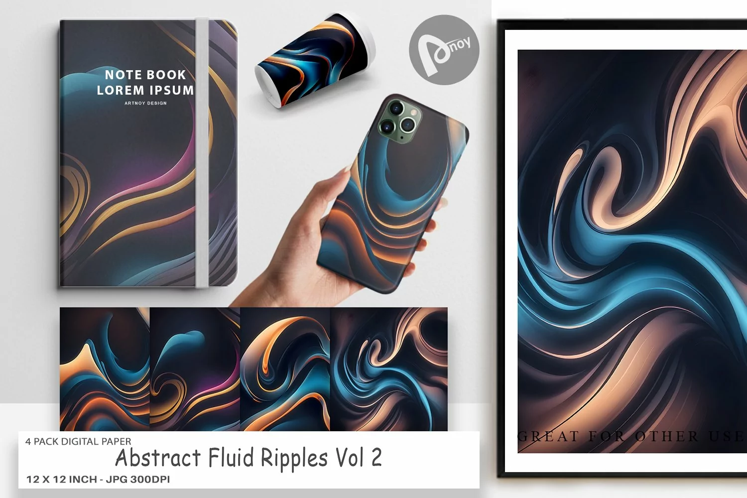 Embark on a journey of artistic excellence with the 4 Pack "Digital Paper Abstract Fluid Ripples". Transform your projects into captivating works of art and immerse yourself in a world of endless creativity. Get your hands on this essential collection today and witness the transformative power it holds for your digital and physical creations.