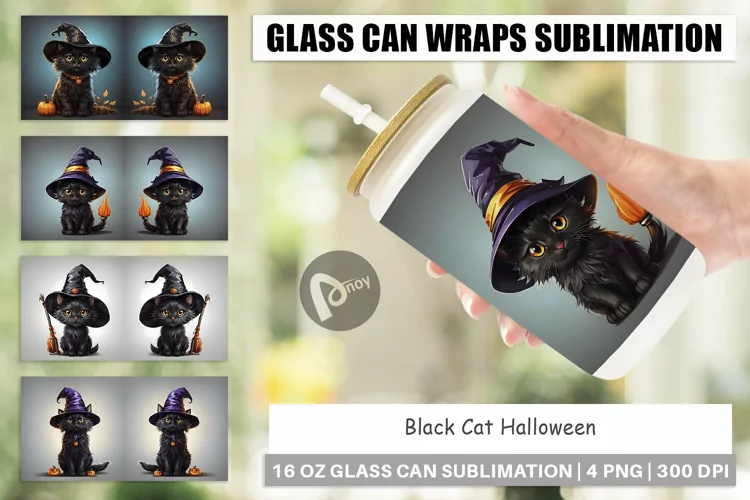 Sublimation Design Black Cat Halloween Glass Can Wrap Libbey Glass Beer Can Glass Glass Can Sublimation 16oz Glass Can Wrap Glass Can Wrap Black Cat Halloween Glass Can Sublimation Black Cat Halloween Glass Can Black Cat