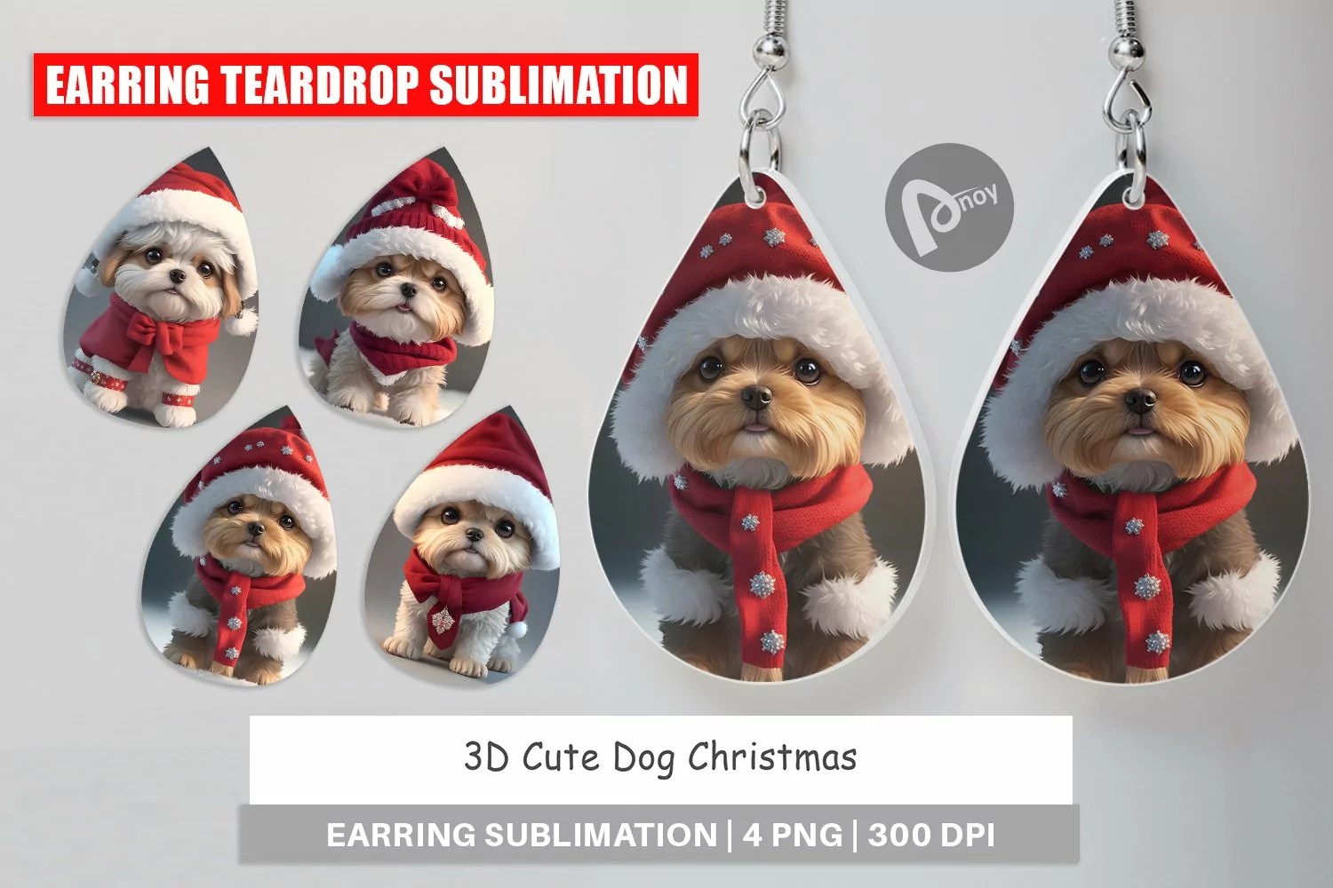 Earring teardrop design 3D Cute Dog Christmas example image 1