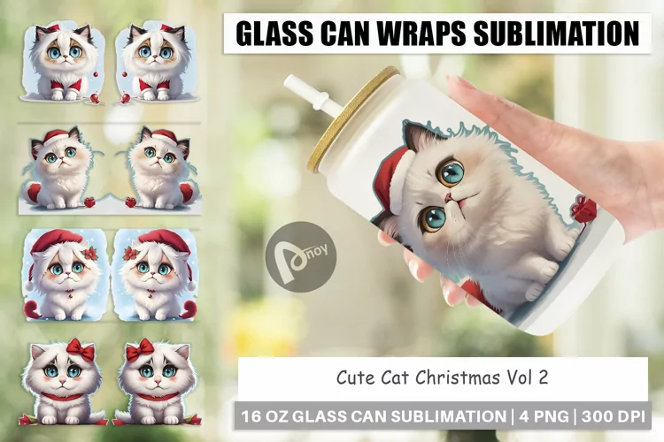 Sublimation Design Glass Can Wrap Libbey Glass Beer Can Glass Glass Can Sublimation 16oz Glass Can Wrap Glass Can Christmas Cute Cat Christmas Glass Can Wrap Cute Cat Christmas Glass Can Sublimation Cute Cat Christmas