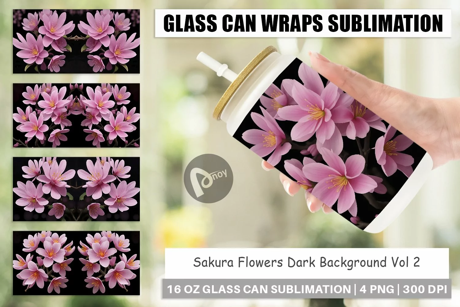 Glass Can Wraps Sakura Flowers Dark example image 1