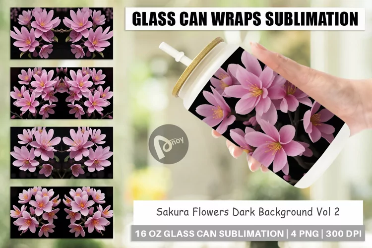 Sublimation Design Glass Can Wrap Libbey Glass Beer Can Glass Glass Can Sublimation 16oz Glass Can Wrap Glass Can Flowers Sakura Flowers Dark Glass Can Wrap Sakura Flowers Dark Glass Can Sublimation Sakura Flowers Dark
