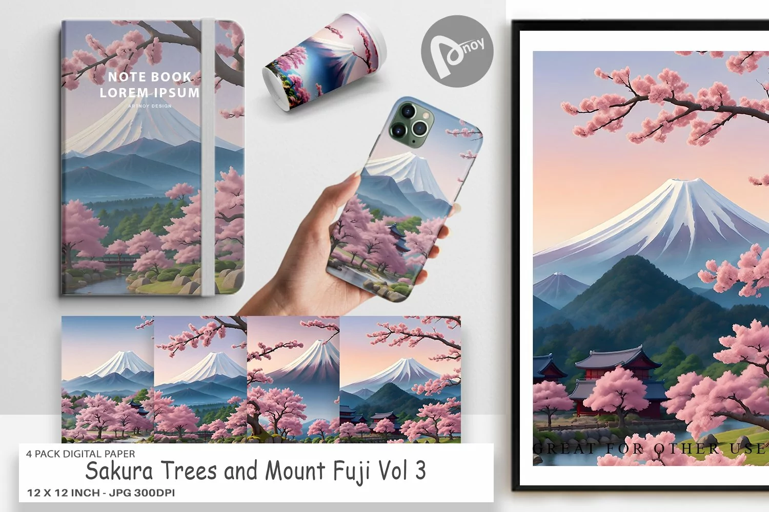Embark on a journey of artistic excellence with the 4 Pack "Digital Paper Sakura Trees Mount Fuji". Transform your projects into captivating works of art and immerse yourself in a world of endless creativity. Get your hands on this essential collection today and witness the transformative power it holds for your digital and physical creations.