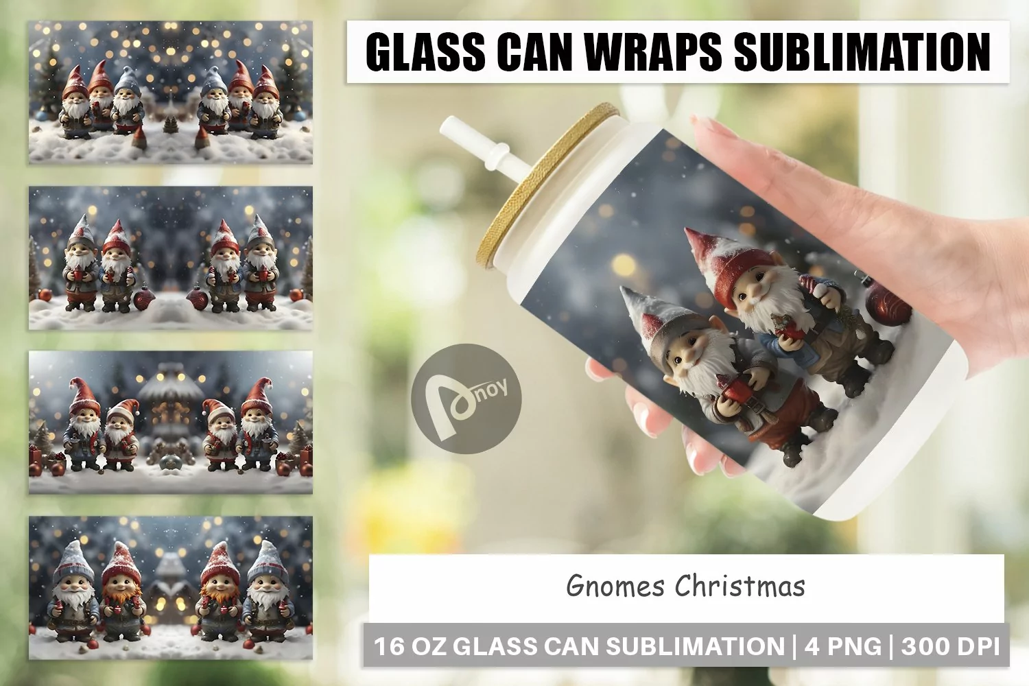 Similar Design Products to Glass Can Wraps Gnomes Christmas