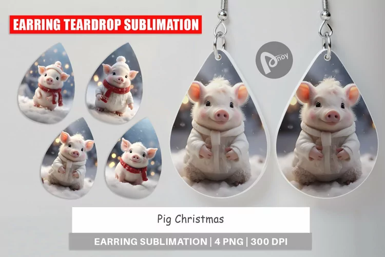 Similar Design Products to Earring teardrop sublimation design Pig Christmas