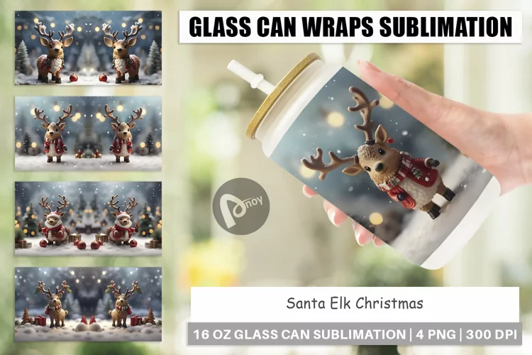 Similar Design Products to Glass Can Wraps Santa Elk Christmas
