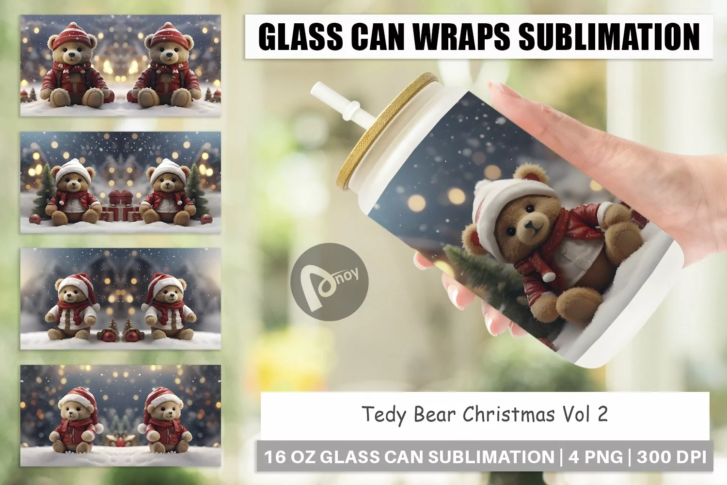 Glass Can Wraps Tedy Bear Christmas example image 1