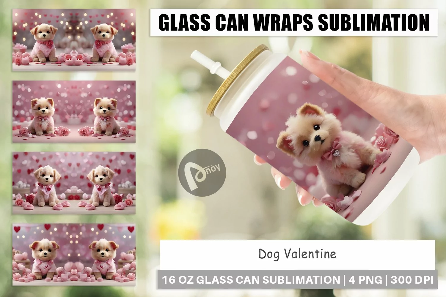 Sublimation Design Dog Valentine Glass Can Wrap Libbey Glass Beer Can Glass Glass Can Sublimation 16oz Glass Can Wrap Glass Can Wrap Dog Valentine Glass Can Sublimation Dog Valentine Glass Can Valentine Dog