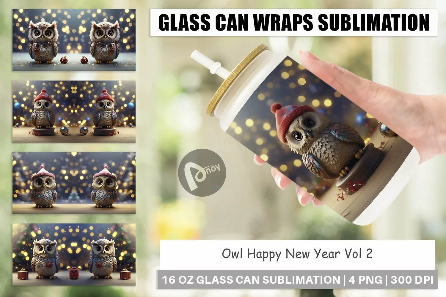 Similar Design Products to Glass Can Wraps Owl Happy New Year
