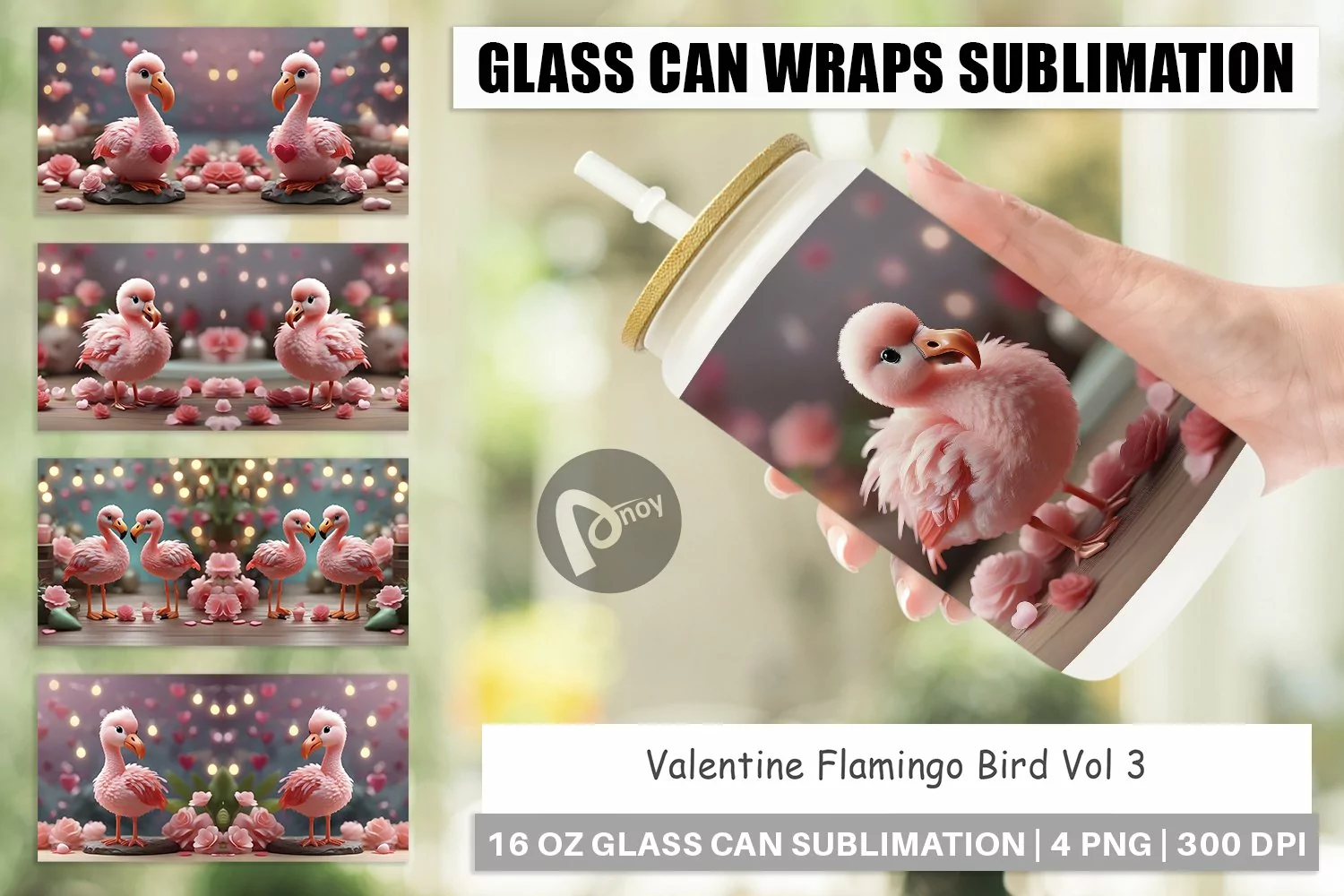 Glass Can Wraps Valentine Flamingo Bird example image 1