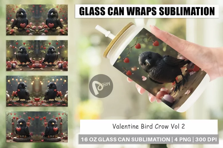 Sublimation Design Glass Can Wrap Libbey Glass Beer Can Glass Glass Can Sublimation 16oz Glass Can Wrap Glass Can Bird Valentine Valentine Bird Crow Glass Can Wrap Valentine Bird Crow Glass Can Sublimation Valentine Bird Crow