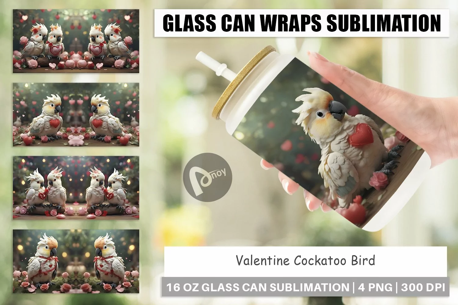 Glass Can Wraps Valentine Cockatoo Bird example image 1