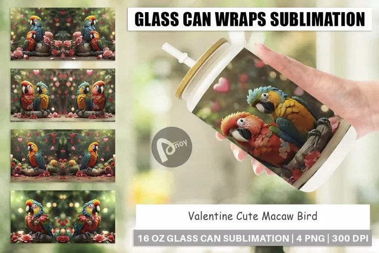 Sublimation Design Glass Can Wrap Libbey Glass Beer Can Glass Glass Can Sublimation 16oz Glass Can Wrap Glass Can Bird Valentine Glass Can Wrap Valentine Cute Macaw Bird Glass Can Sublimation Valentine Cute Macaw Bird Valentine Cute Macaw Bird