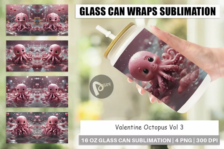 Valentine Octopus Sublimation Design Glass Can Wrap Libbey Glass Beer Can Glass Glass Can Sublimation 16oz Glass Can Wrap Glass Can Wrap Valentine Octopus Glass Can Sublimation Valentine Octopus Glass Can Octopus Valentine
