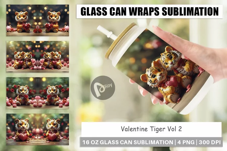 Similar Design Products to Glass Can Wraps Valentine Tiger