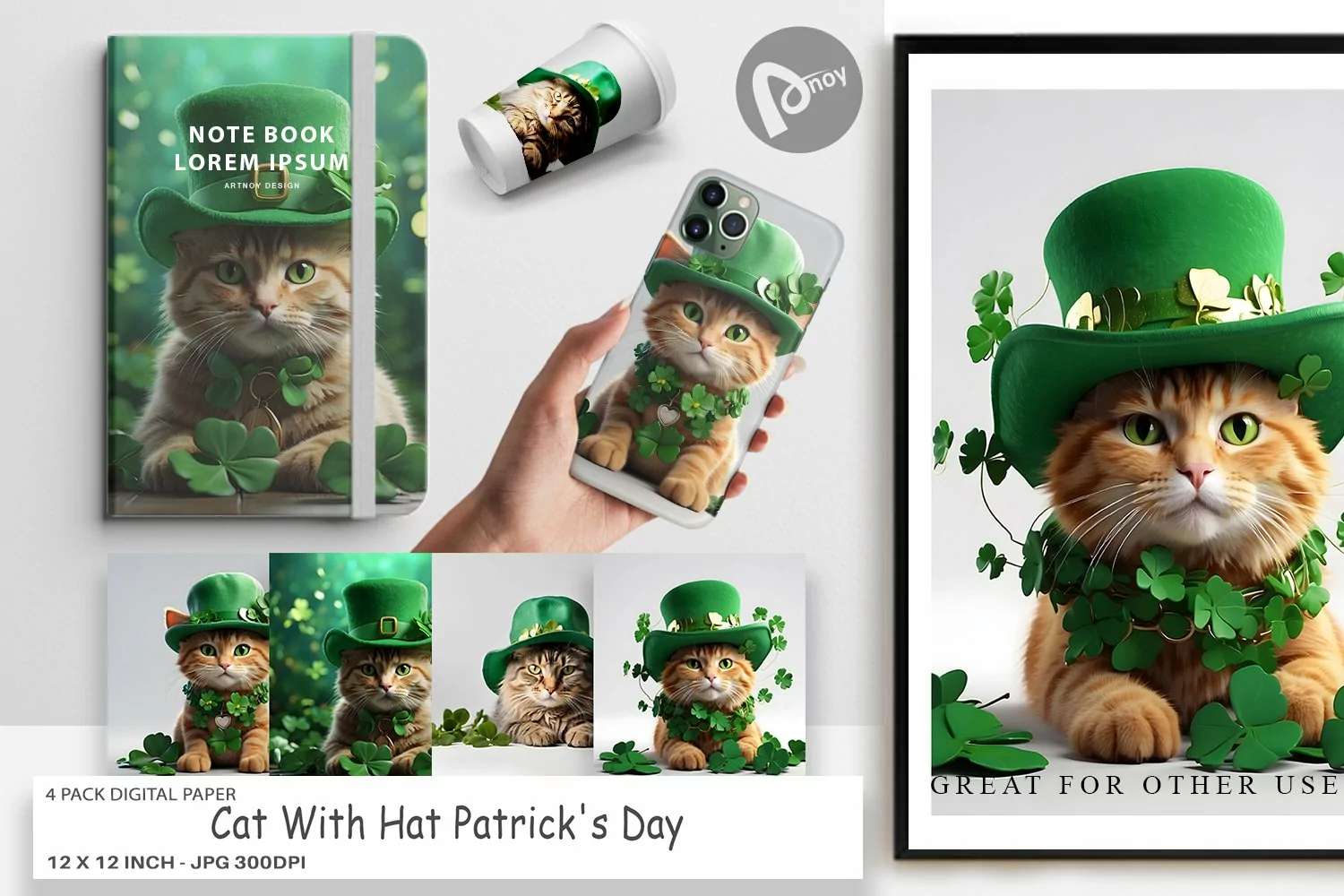 Digital Paper Cat With Hat Patrick's Day