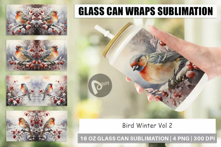 Sublimation Design Glass Can Wrap Libbey Glass Beer Can Glass Glass Can Sublimation 16oz Glass Can Wrap Glass Can Bird Bird Winter Glass Can Wrap Bird Winter Glass Can Sublimation Bird Winter