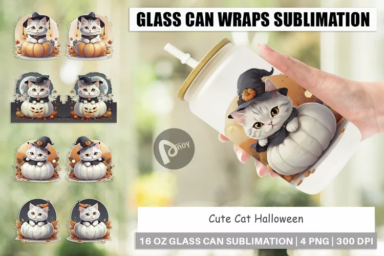 Sublimation Design Cute Cat Halloween Glass Can Wrap Libbey Glass Beer Can Glass Glass Can Sublimation 16oz Glass Can Wrap Glass Can Wrap Cute Cat Halloween Glass Can Sublimation Cute Cat Halloween Glass Can Cat Halloween